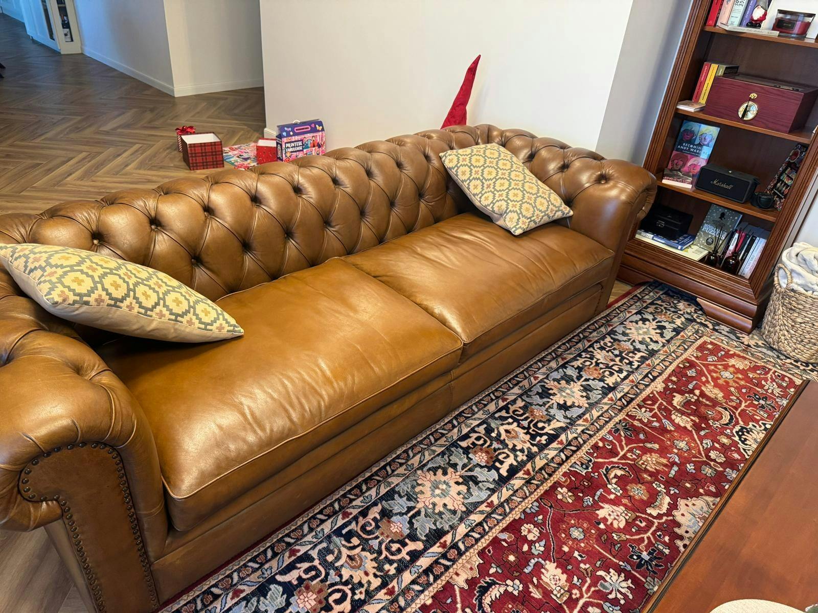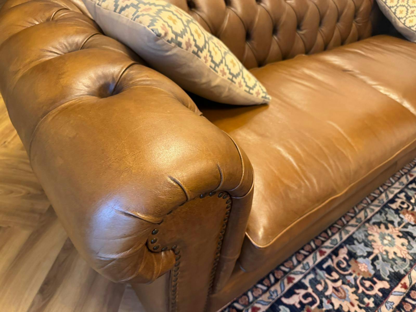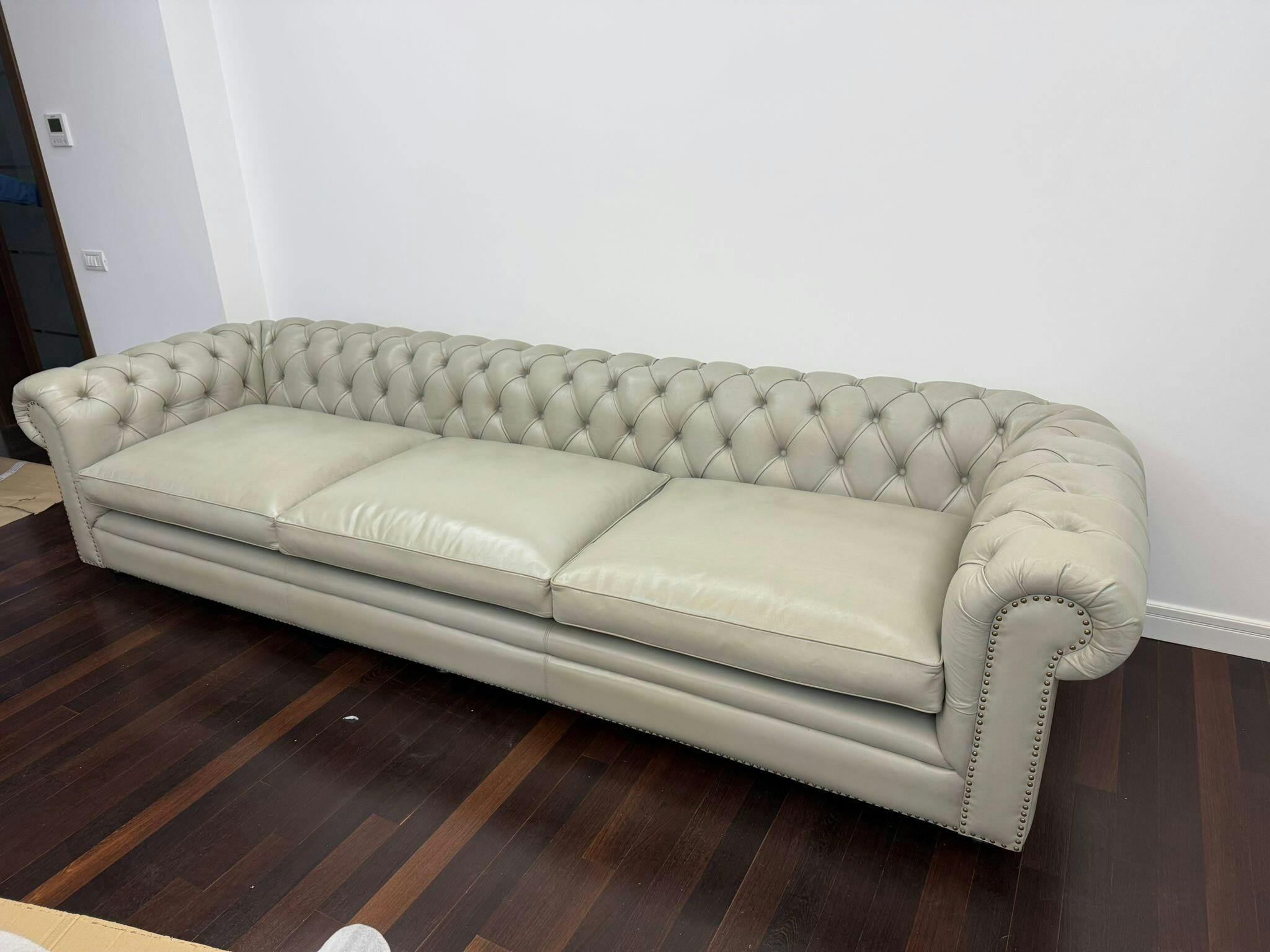 Wohnzimmercouch aus Büffelleder oder Stoff
